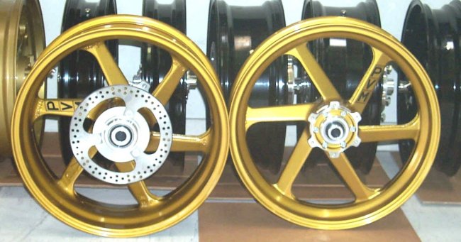 DISCS Blackstone carbon fiber 4.85 lbs Dymag carbon fiber 5.6 lbs Dymag mag center carbon rim 7.8lbs Hi Point forged aluminum 8.2lbs (unofficial weight) Marchesini cast mag 7.7 lbs Marchesini forged aluminum 8 lbs Marchesini forged mag 7 lbs Marvic Penta II 7.5 lbs PVM cast mag 9 lbs PVM forged aluminum 10 lbs PVM forged mag 7 lbs PVM Colorline 5 spoke two piece 14 lbs OZ forged aluminum 7.75 lbs Stock RC51 10.5 lbs |